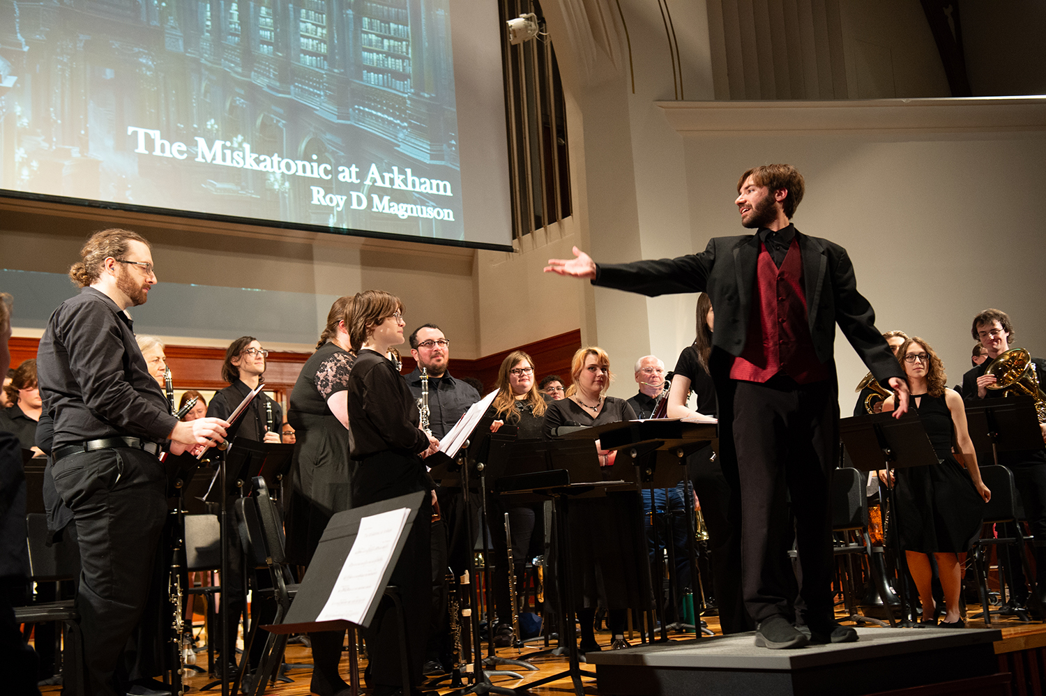 "Leonard Bernstein opens the concert, as we will perform a set of pieces based on his works, including West Side Story and MASS," said music professor Justin Swearinger, who directs the Wind Ensemble. "We will honor and recognize seven graduating seniors while playing Kathryn Salfelder's 'Reminiscence.'"